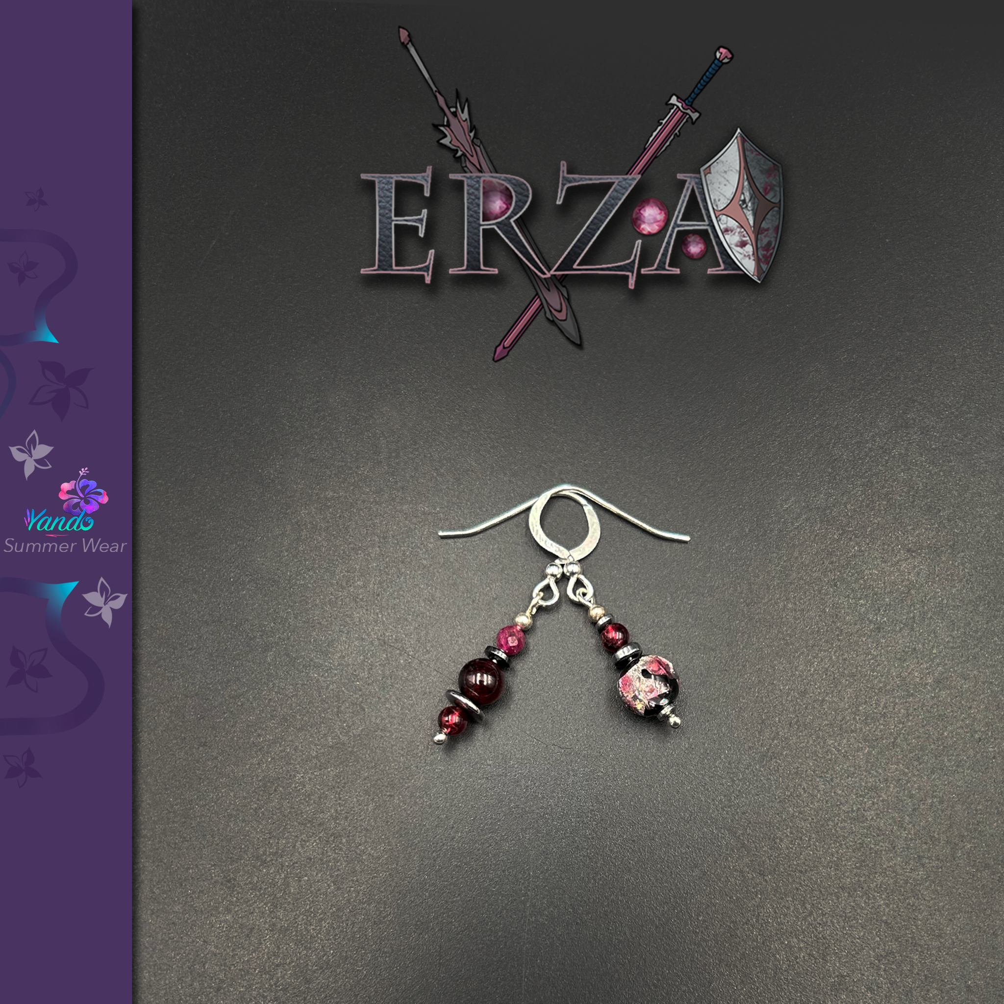 Composition des boucles d'oreille : Grenat, Rubis pierre fine, hématite, Hotaru Rose Murasaki, crochet et tige argent 925.