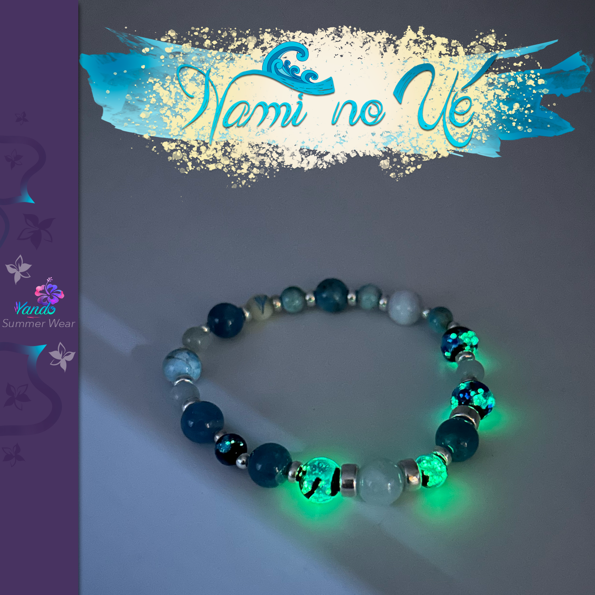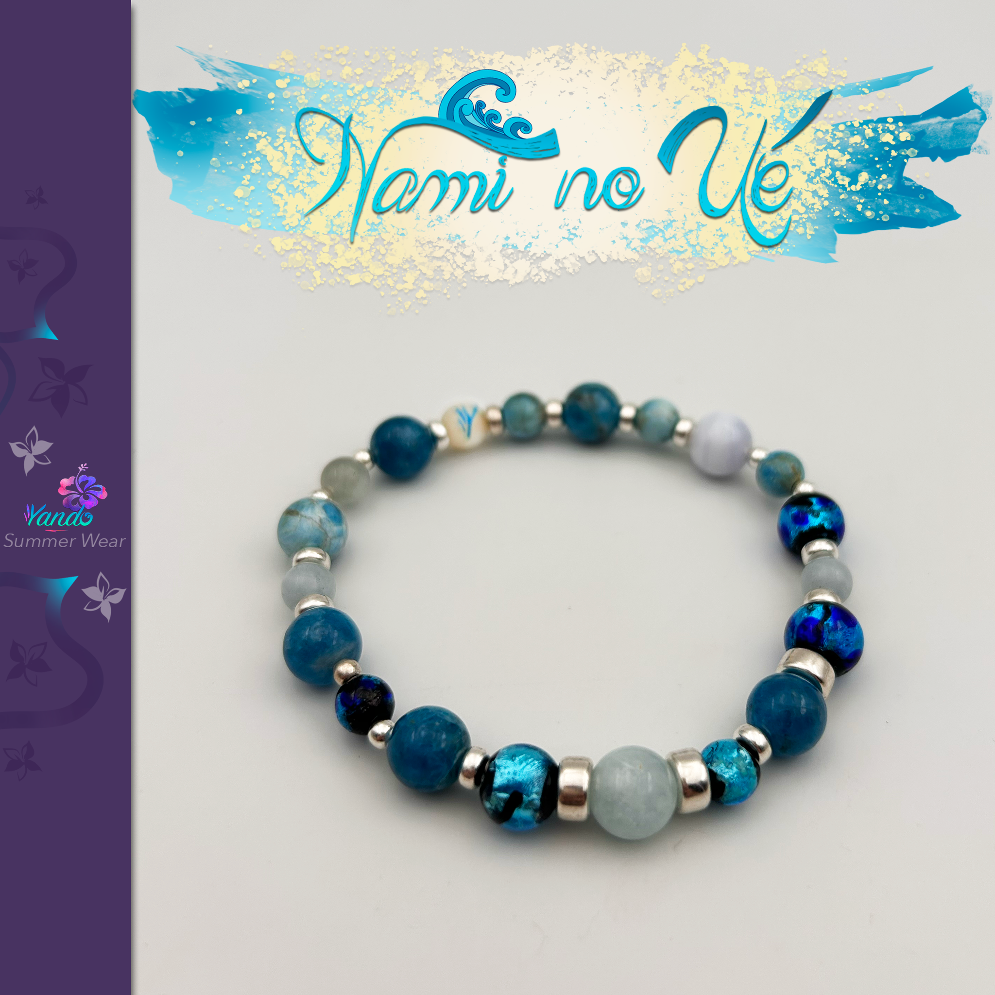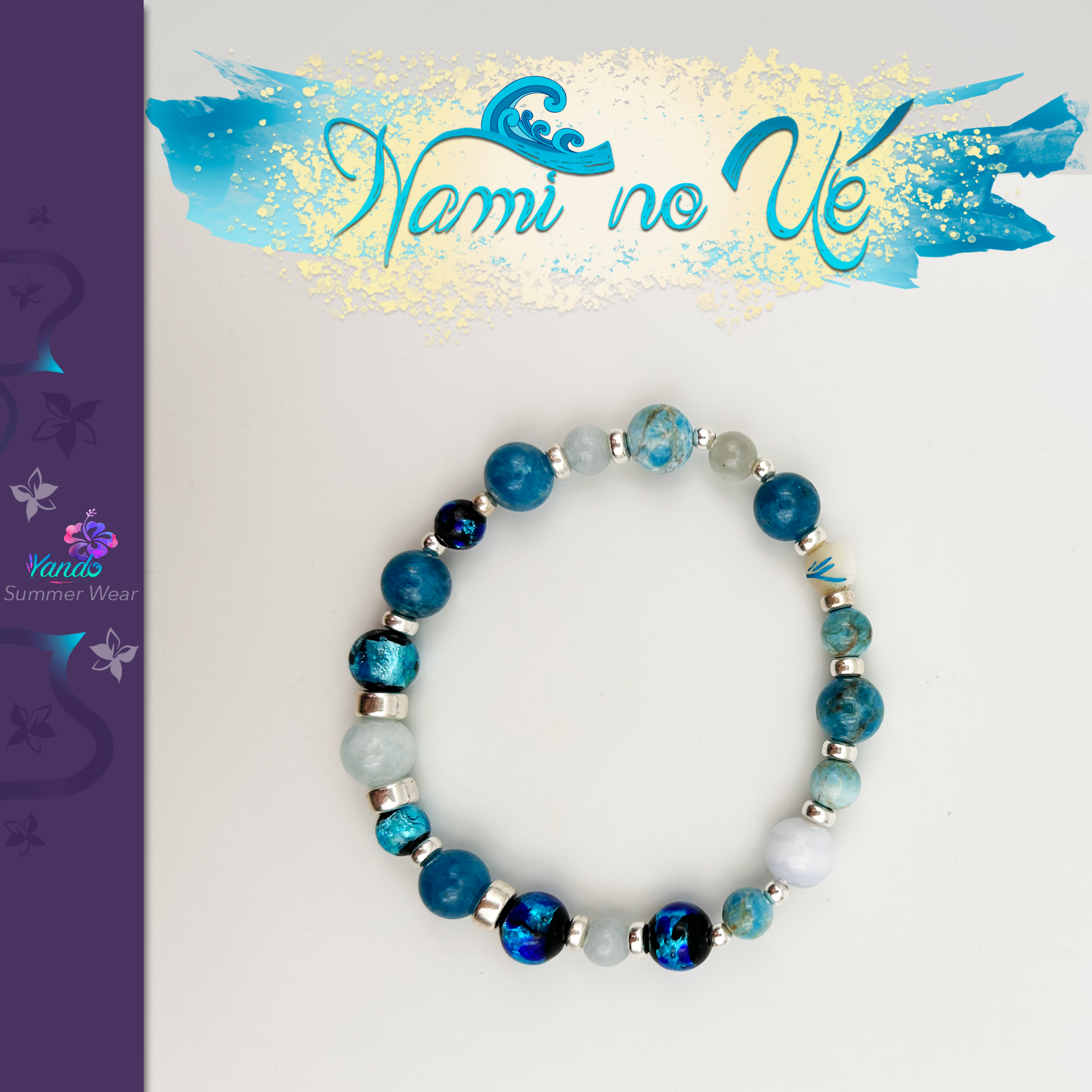 Nommé ainsi en référence à la plage naminoué (le haut de la vague) de Naha (那覇), ce bracelet symbolise une vague avec les différents dégradés de bleu en agate et en aigue marine pour son écume.